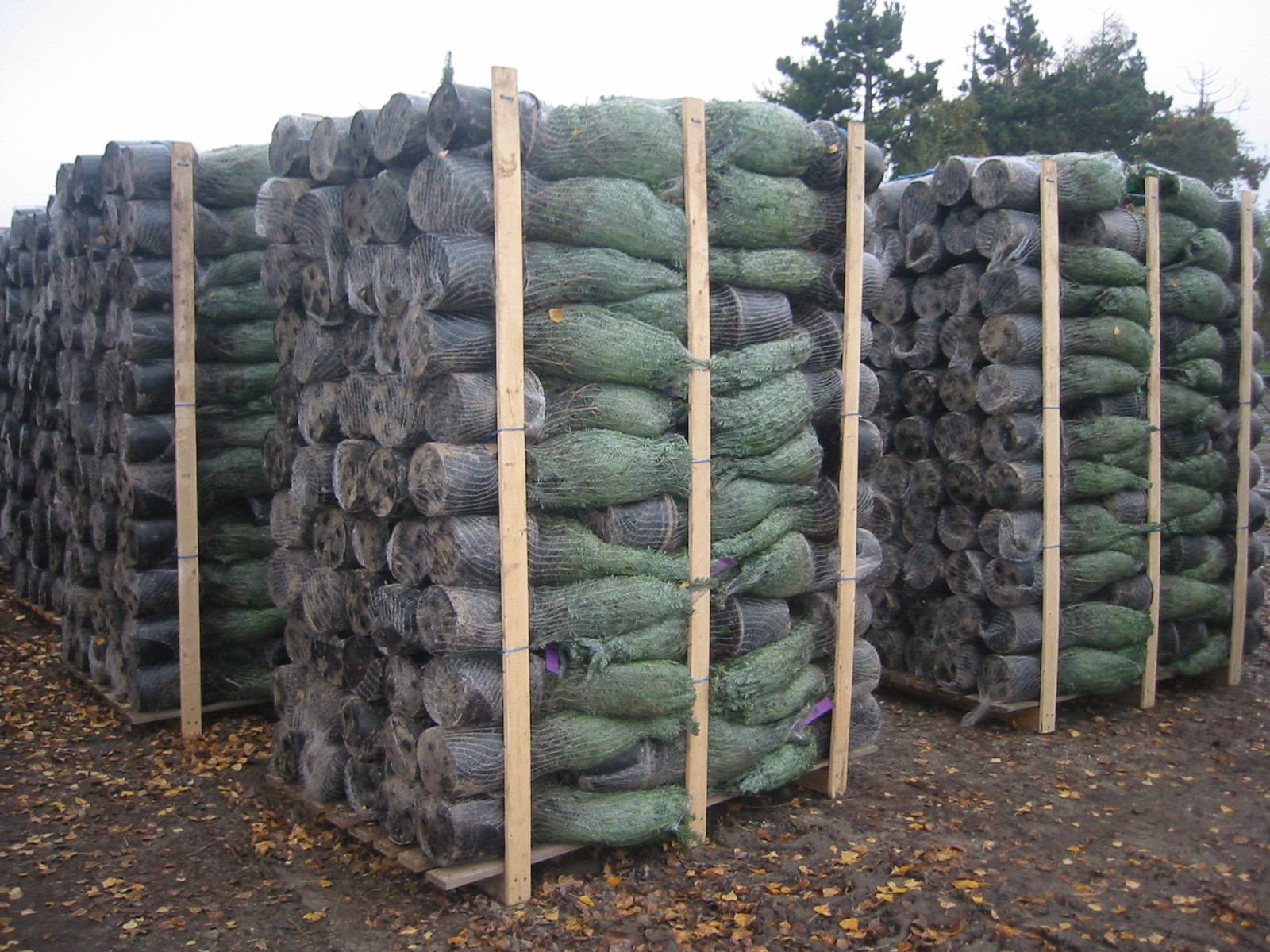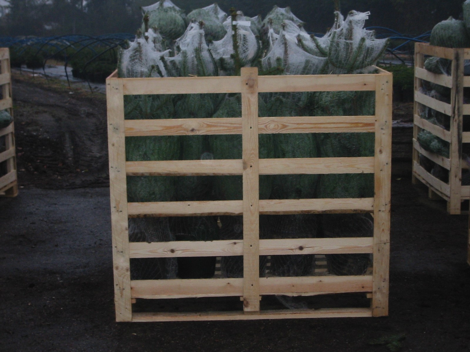 De pottegroede juletræer kan afhentes løst eller leveres på CC-containere og CT-paller. Inden afsendelse bliver træerne pakket enkeltvis i net.