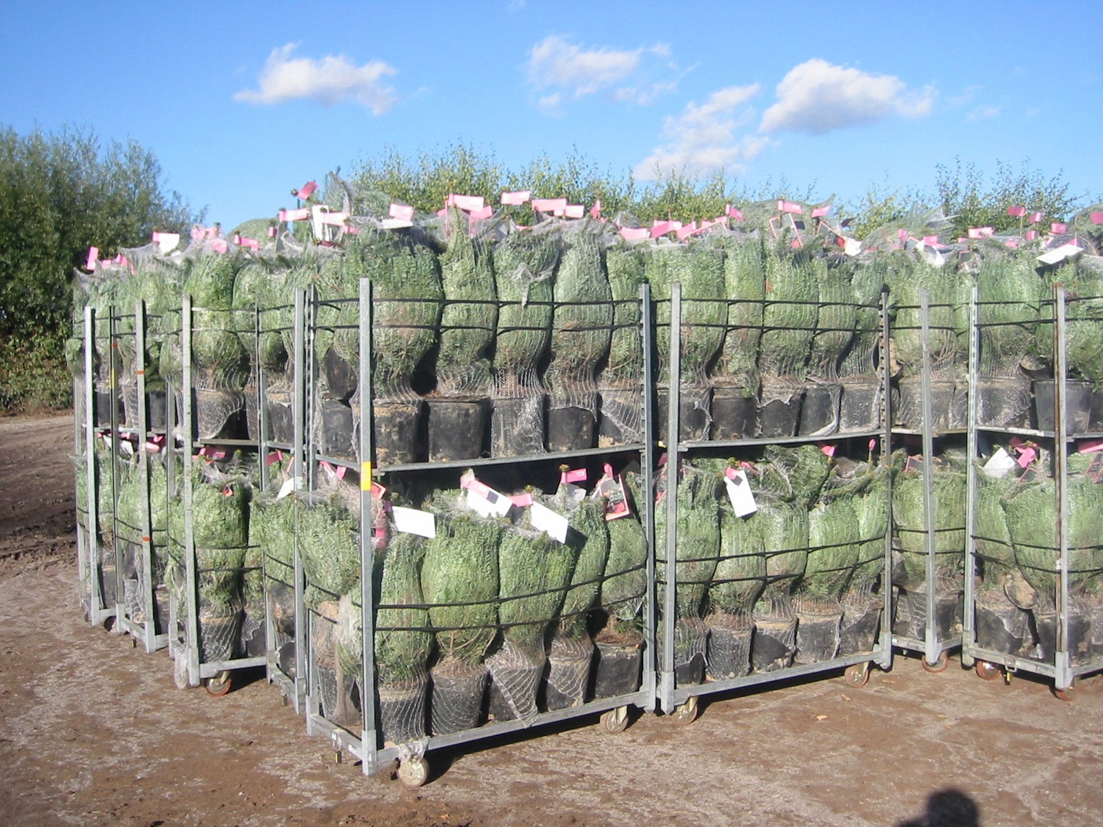Afhængig af træernes størrelse kan der stå fra 12 til 30 pottegroede træer per cc-container.
